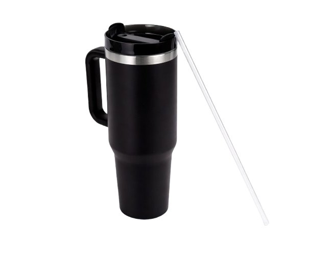 Caneca térmica com capacidade para até 1,2 litro. Conserva a temperatura de líquidos por mais tempo através da sua estrutura de parede dupla composta por camada interna em inox 304 e externa em inox 201 com pintura eletrostática. Conta com tampa rosqueável em plástico polipropileno (PP) com abertura superior giratória e acesso para canudo. Acompanha canudo plástico.