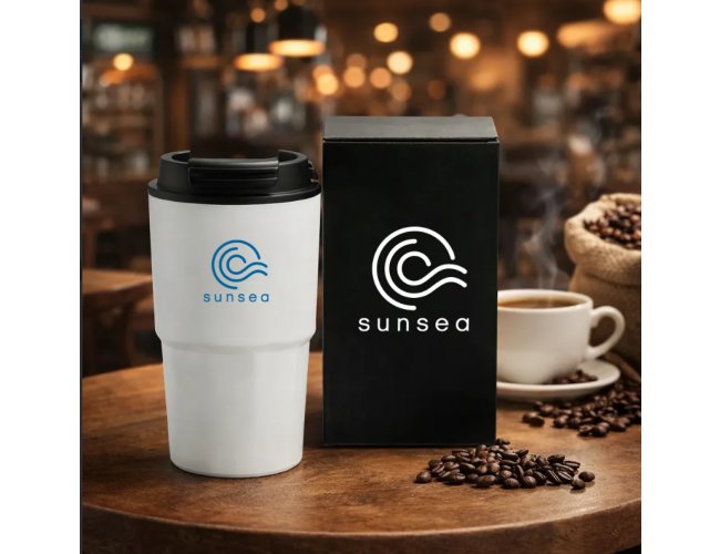 Copo térmico branco com tampa e capacidade de 450 ml. Conta com protetor higiênico na tampa. Mantém a temperatura da bebida por mais tempo.